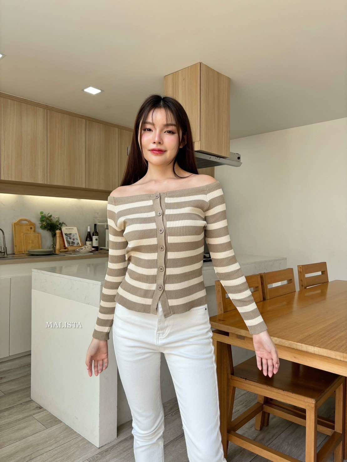 sweat t-shirt button at front with long sleeve2C.light brownSize: free